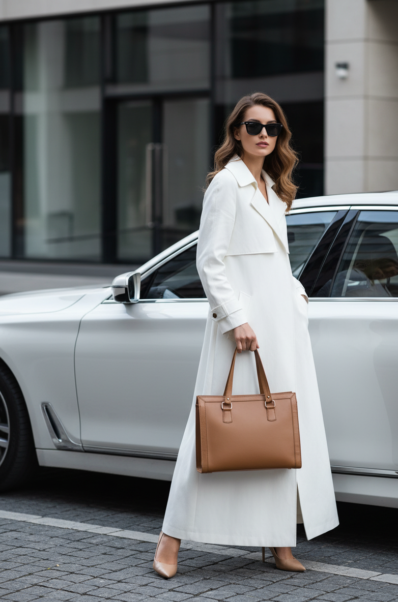 - Design Details: The front and back panels are plain and clean, with minimal stitching that defines the borders and sides, giving it a professional and minimalist look.